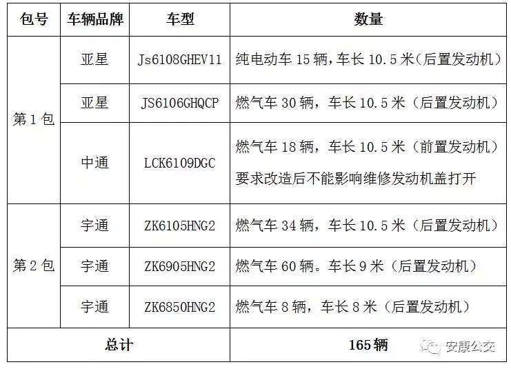 一、招標(biāo)內(nèi)容。本次招標(biāo)共分兩包,共采購165輛公交車駕駛區(qū)域安全防護(hù)隔離設(shè)施。第一包亞星客車45輛(其中純電動15輛),中通客車18輛。第二包宇通客車102輛。