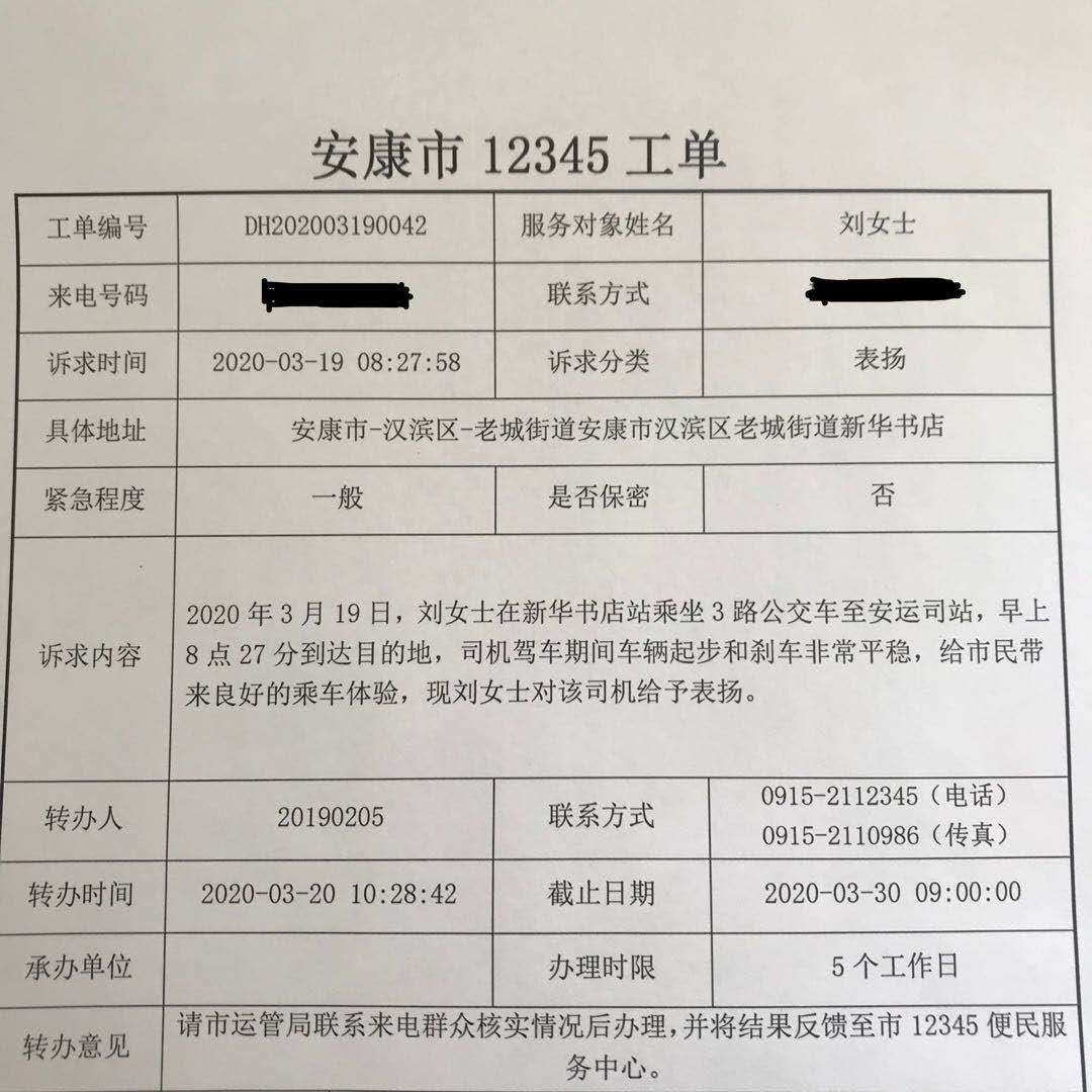3路公交途經地區路況復雜,客流量大,但駕駛員喻祥根師傅在當班期間,用自己嫻熟的技術和優質的服務為乘客帶去了愉快的乘車體驗。為此乘客劉女士特通過12345服務平臺表達自己的敬意。