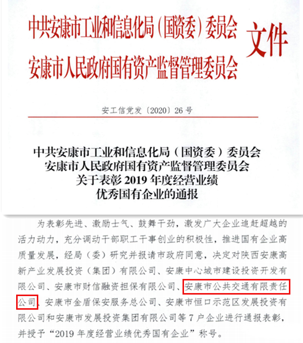 近日,從市國資委傳來喜訊,市公交公司榮獲“2019年度經營業績優秀國有企業”稱號,受到通報表彰。