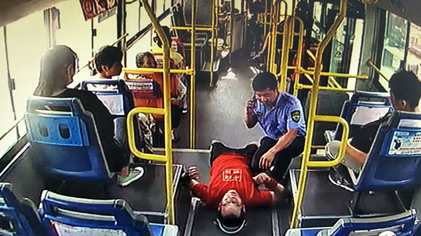 8月2日,市公交公司駕駛員王強像往常一樣,駕駛著6路公交車行駛在線路上,當車行駛到天貿城站時,一男子突然倒在車內,王強見狀立即將車緩慢停靠在站牌旁,向暈倒男子方向跑去,一邊安撫他防止其睡著,一邊撥打120急救電話。這就出現了文章開頭的一幕。